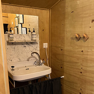 • douche, wc en wastafel in een nabijgelegen bijgebouw